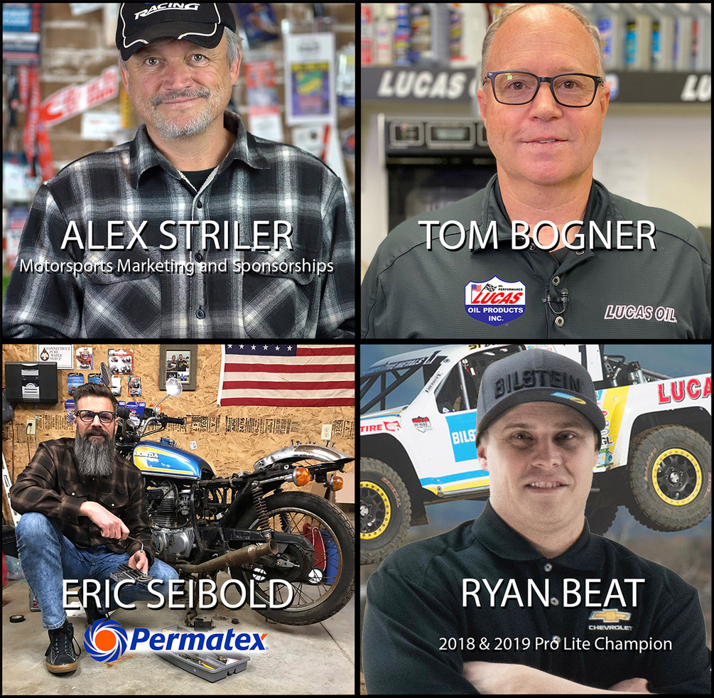 Tom Bogner of Lucas Oil, Eric Seibold of Permatex, and pro racer Ryan Beat talk about: